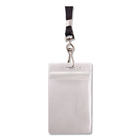 Resealable Badge Holders Combo Pack, 36" Lanyard, Vertical, Transparent Frost 3.68" x 5" Holder, 2.38" x 3.75" Insert, 20/PK