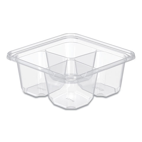 TamperGuard Snack Boxes, 4 Compartments, 6.3 x 6.3 x 2.6, Clear, Plastic, 300/Carton