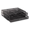 Enhance your workspace with this two-tier desktop organizer and monitor stand. It's perfect for securely supporting desktop electronics such as laptops, notebooks, monitors, printers and can even double as a TV stand. The organizer features a durable metal mesh construction that withstands daily use. Non-slip grips on the bottom of the stand keep it firmly in place, ensuring your items stay secure and stable. Weighing in at just 4.4 lbs, it's also extremely portable and can easily be moved to wherever you need it. Maximize your organization capabilities with two tiers of drawers. The top tier is ideal for storing files, folders and other important documents, while one of the pull-out drawers features three separate compartments for storing office essentials like pens, pencils and paper clips. The see-through design lets you quickly locate what you need. This desktop organizer is a great addition to your office setup and blends in perfectly with the rest of the Network Collection. It also makes an excellent gift for graduations, birthdays, holidays, and other special occasions. Boost your productivity and keep your space tidy with this versatile desktop organizer.