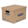 Bankers Box SmoothMove Classic Moving and Storage Boxes feature easy set-up-no tape required for box assembly. Convenient lift-off lid. Easy to carry handles. Durable, double end, double bottom, 32 ECT B-Flute Kraft corrugated board construction. Reusable and recyclable. Perfect for use in the office, home, school, or wherever you would like to move and store important papers, documents or any items.